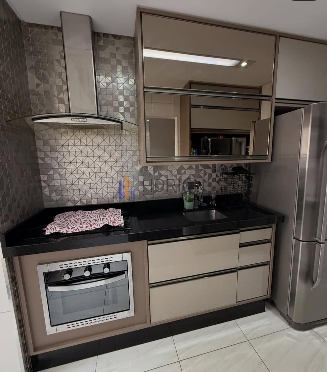 Mobília: armários da cozinha, fogão, forno e coifa.