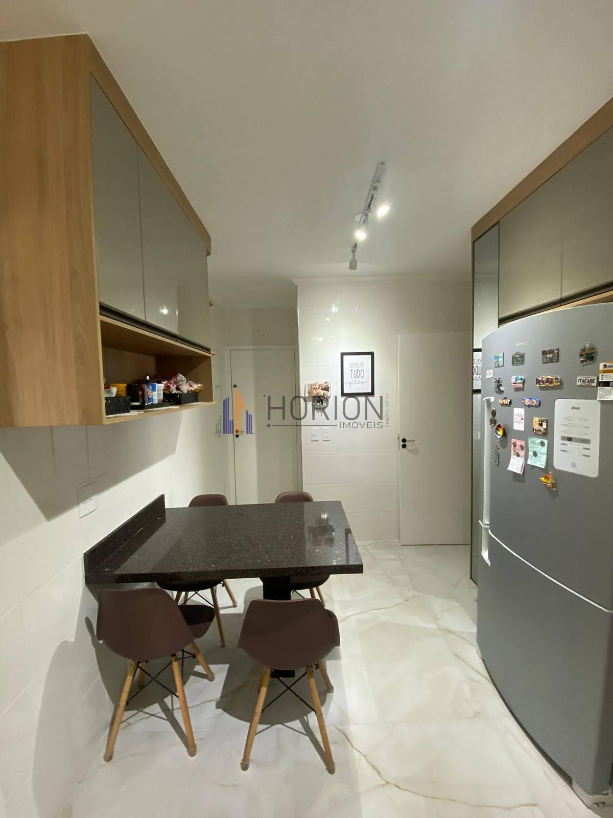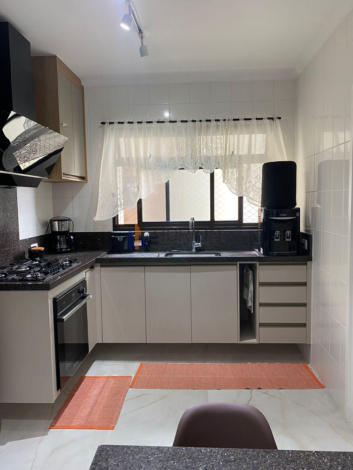 cozinha com armários planejados de 1a linha, forno Brastemp, Cooktop 5 bocas e coifa Mueller, mesa fixa em mármore com 4 cadeiras